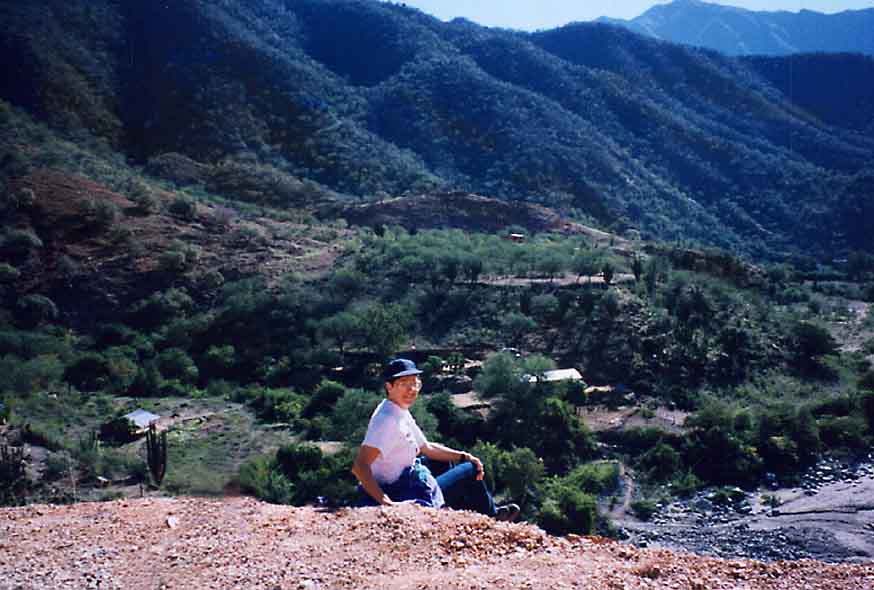 Here I'm sitting on a cliff overlooking the river in Batopilas, an old silver-mining town that's a seven-hour bus trip from the rim of the canyon...almost 6,000 feet down in the depths of a remote canyon. (Read my article, "Copper Canyon for the Independent Traveler.")