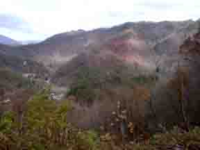 They're called the "Smoky Mountains" because of the perpetual blu-ish haze...the above picture with the fall colors looks like an oil painting!