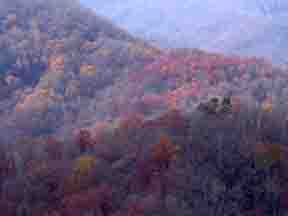 They're called the "Smoky Mountains" because of the perpetual blu-ish haze...the above picture with the fall colors looks like an oil painting!